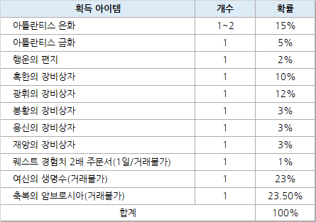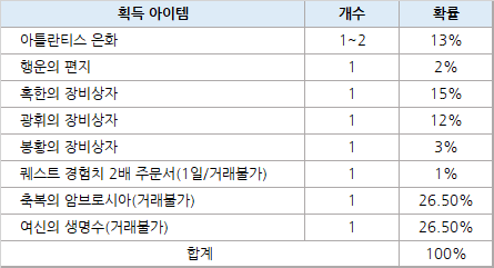 - 이벤트 내용: 일일 플레이 타임 1/2/3/4시간 달성 시 마다 아래와 같이 아이템이 지급됩니다.
