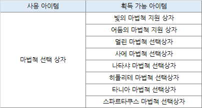※ ‘마법책 선택상자’를 통해 원하는 용병의 마법책을 획득할 수 있습니다.