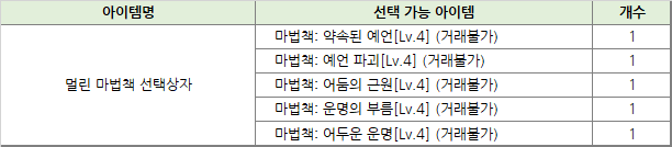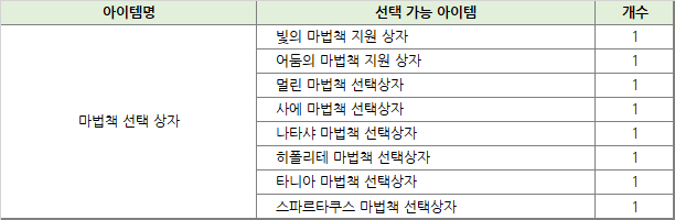 - 제목 : '마법책 선택 상자' 구성품 안내