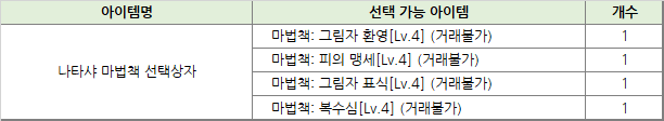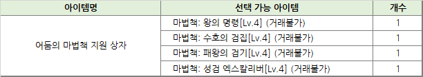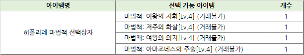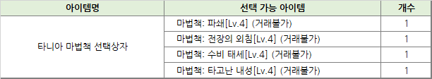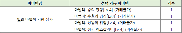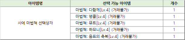 ※ ‘마법책 선택 상자’ 사용 시, 아래 구성품 중 1종을 선택하여 획득할 수 있습니다.