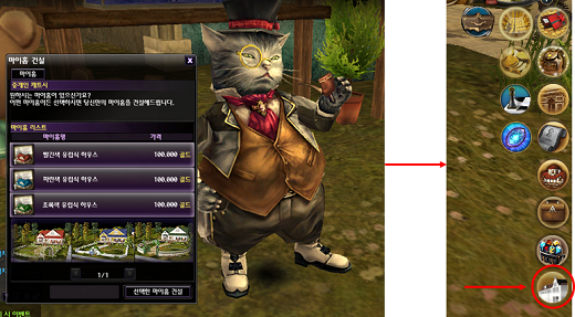 - 마이홈은 중개인 캐트시 NPC를 통해 구매 가능합니다.