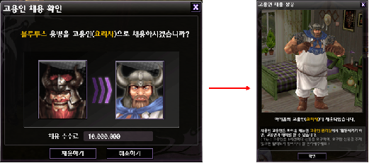 - 해당 용병 선택 후 활동시키기 버튼 클릭
